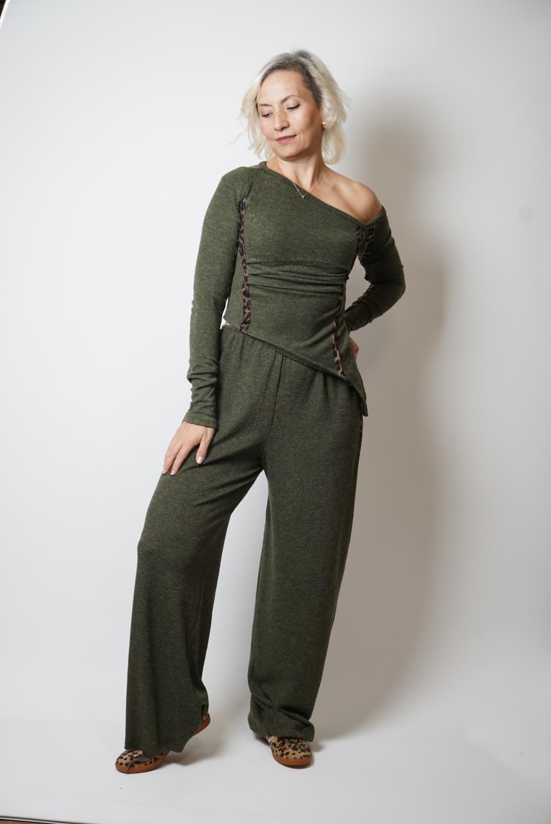 leopar biyeli triko takım